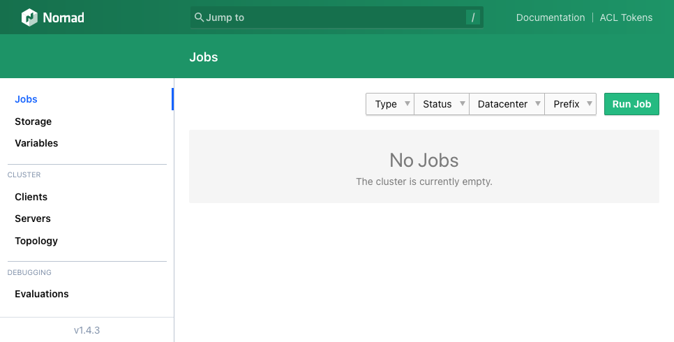 1. Open the Nomad web interface from one of the server nodes, as described in the previous section.